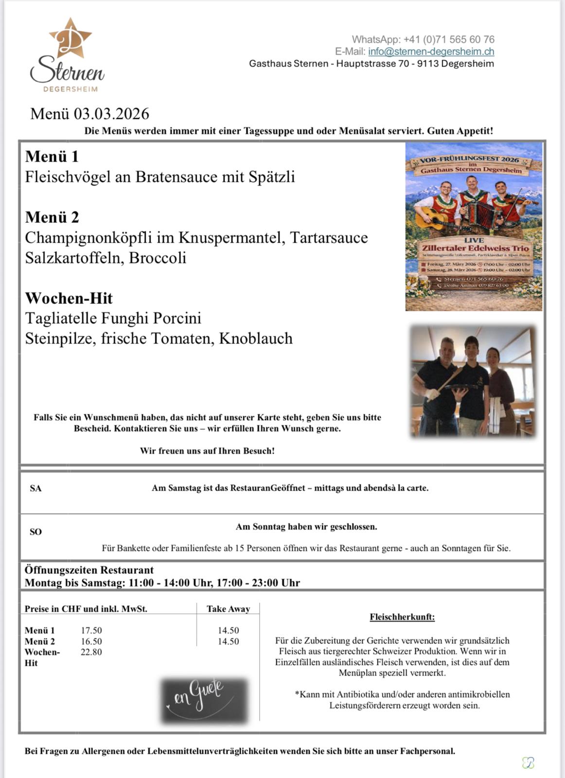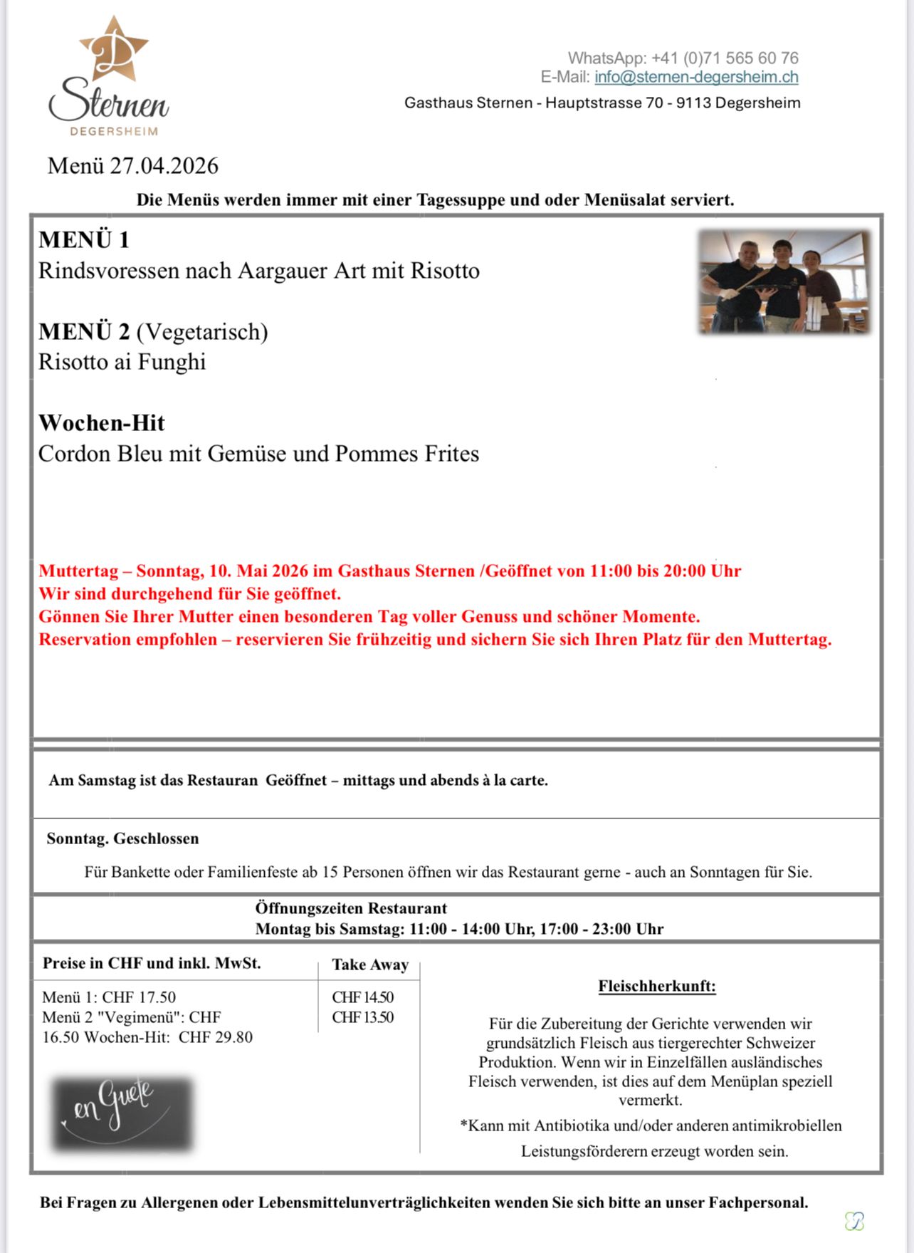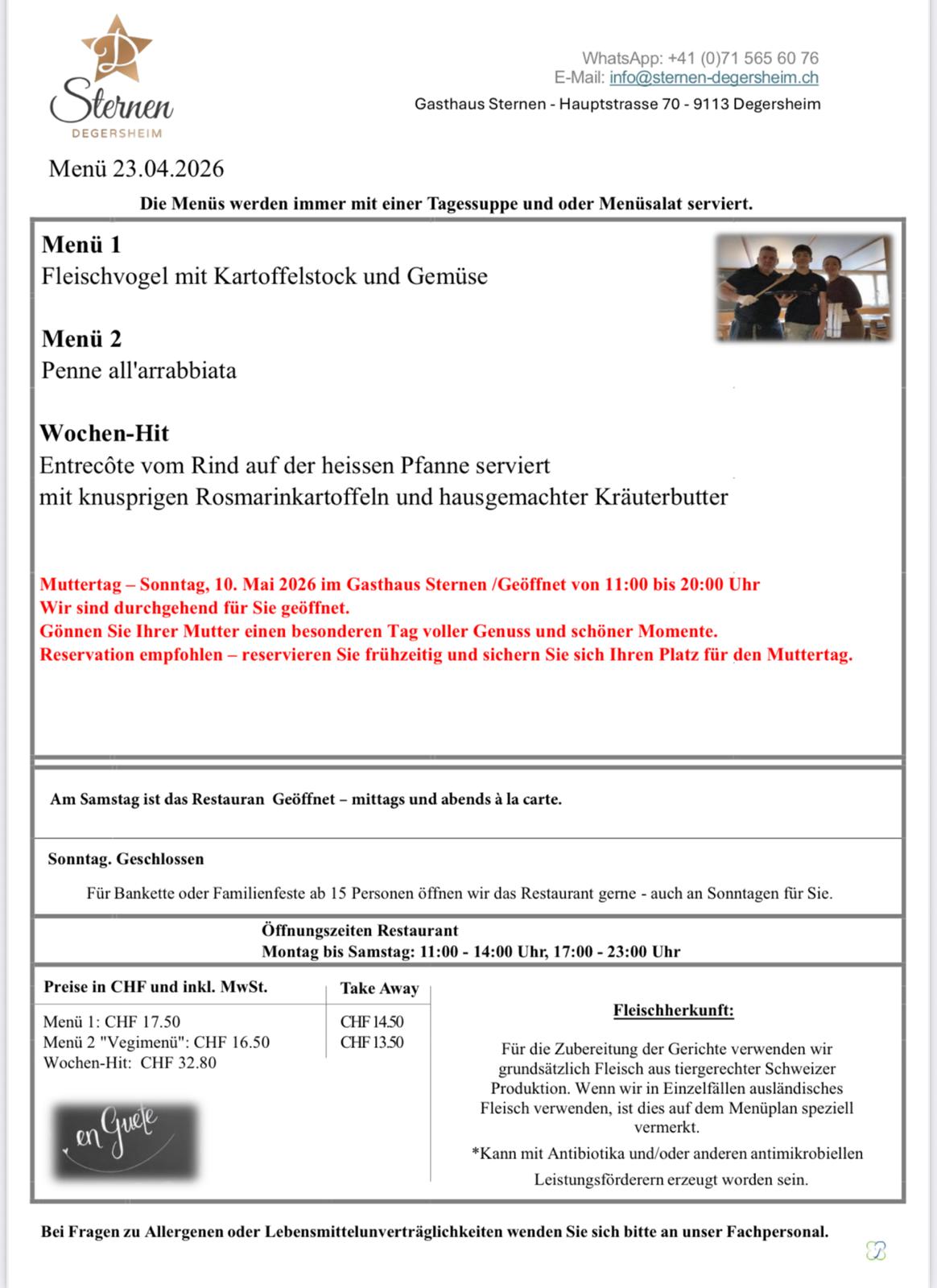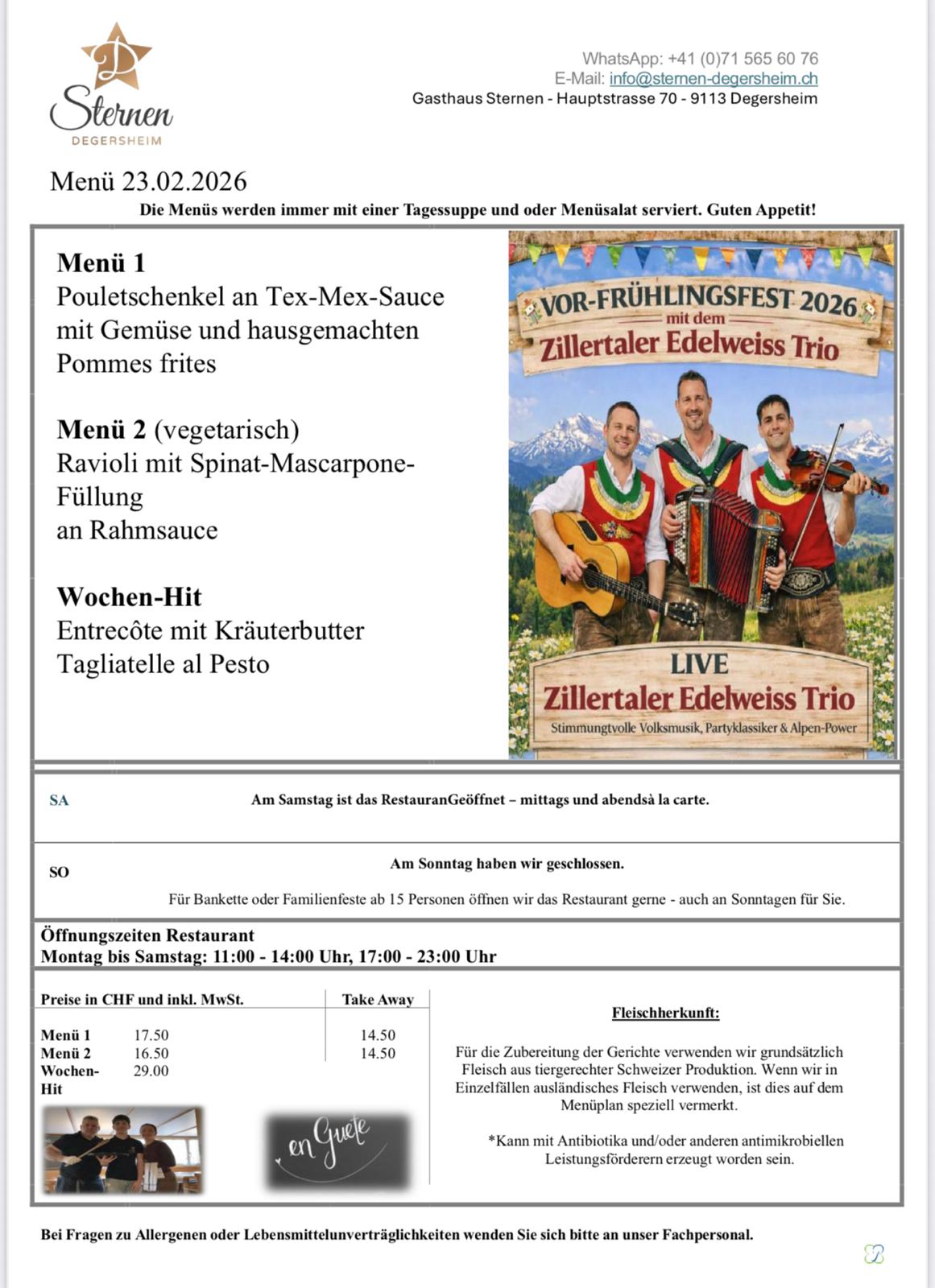 VOR-FRÜHLINGSFEST 2026 im Gasthaus Sternen Degersheim