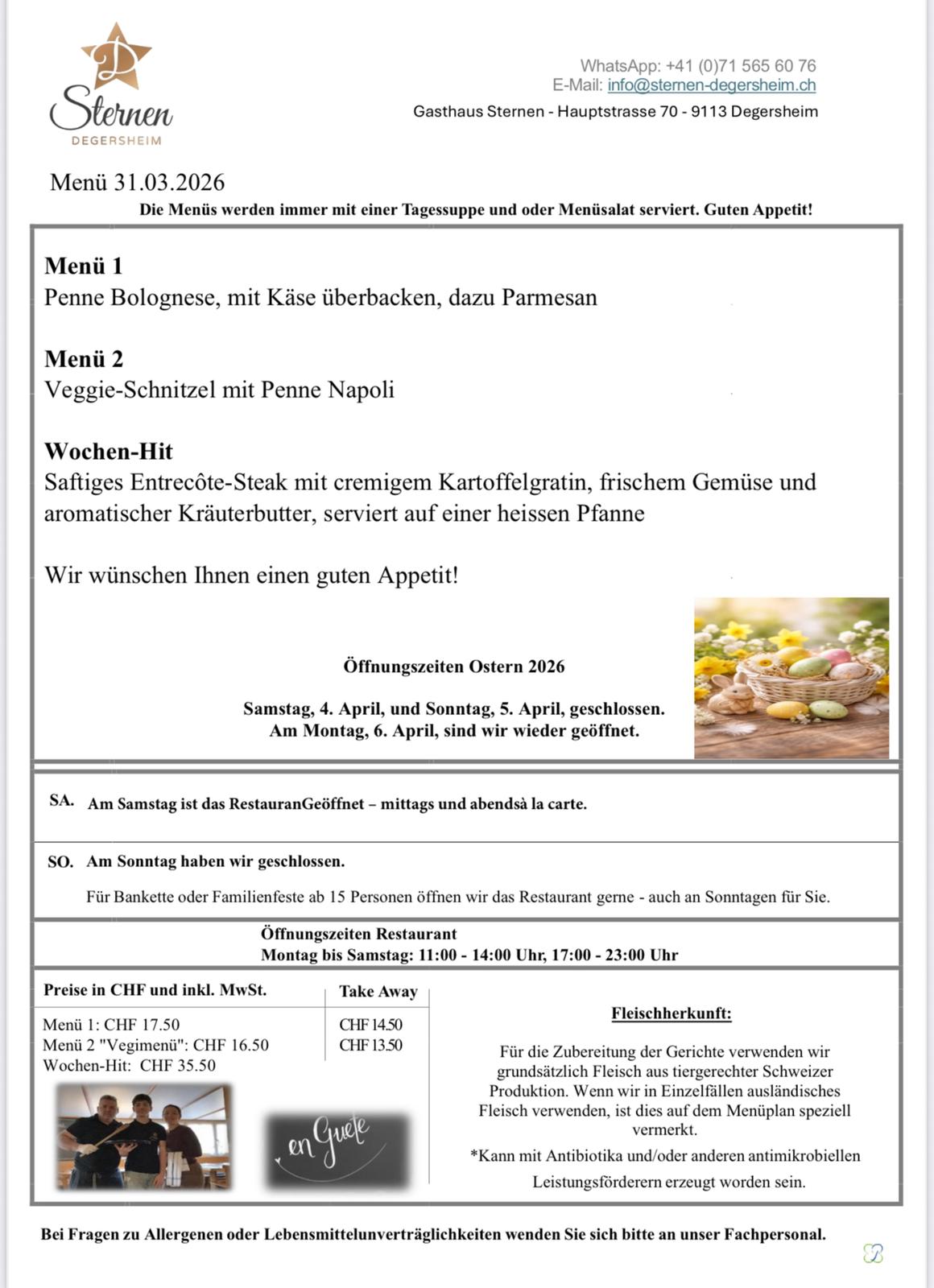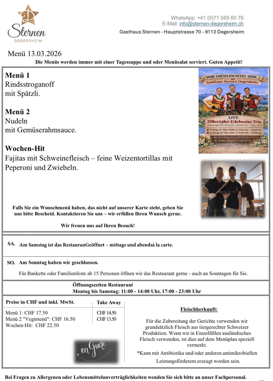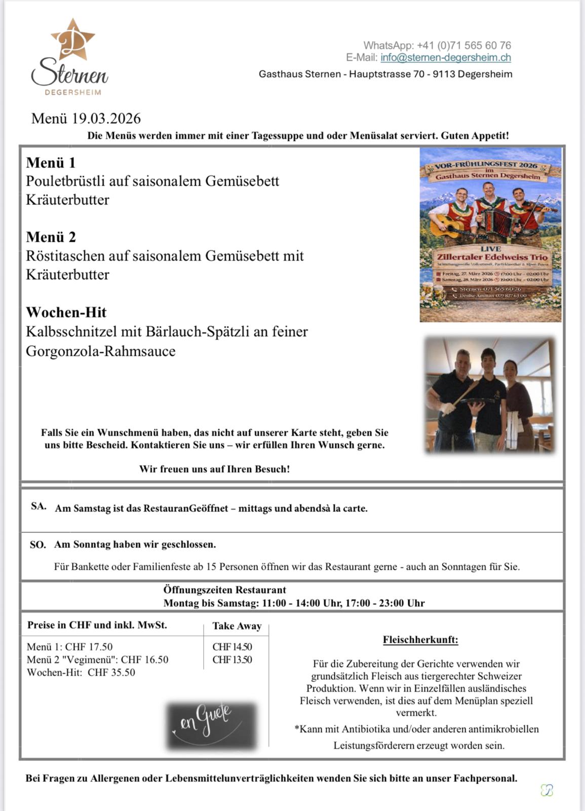 VOR-FRÜHLINGSFEST 2026 im Gasthaus Sternen Degersheim