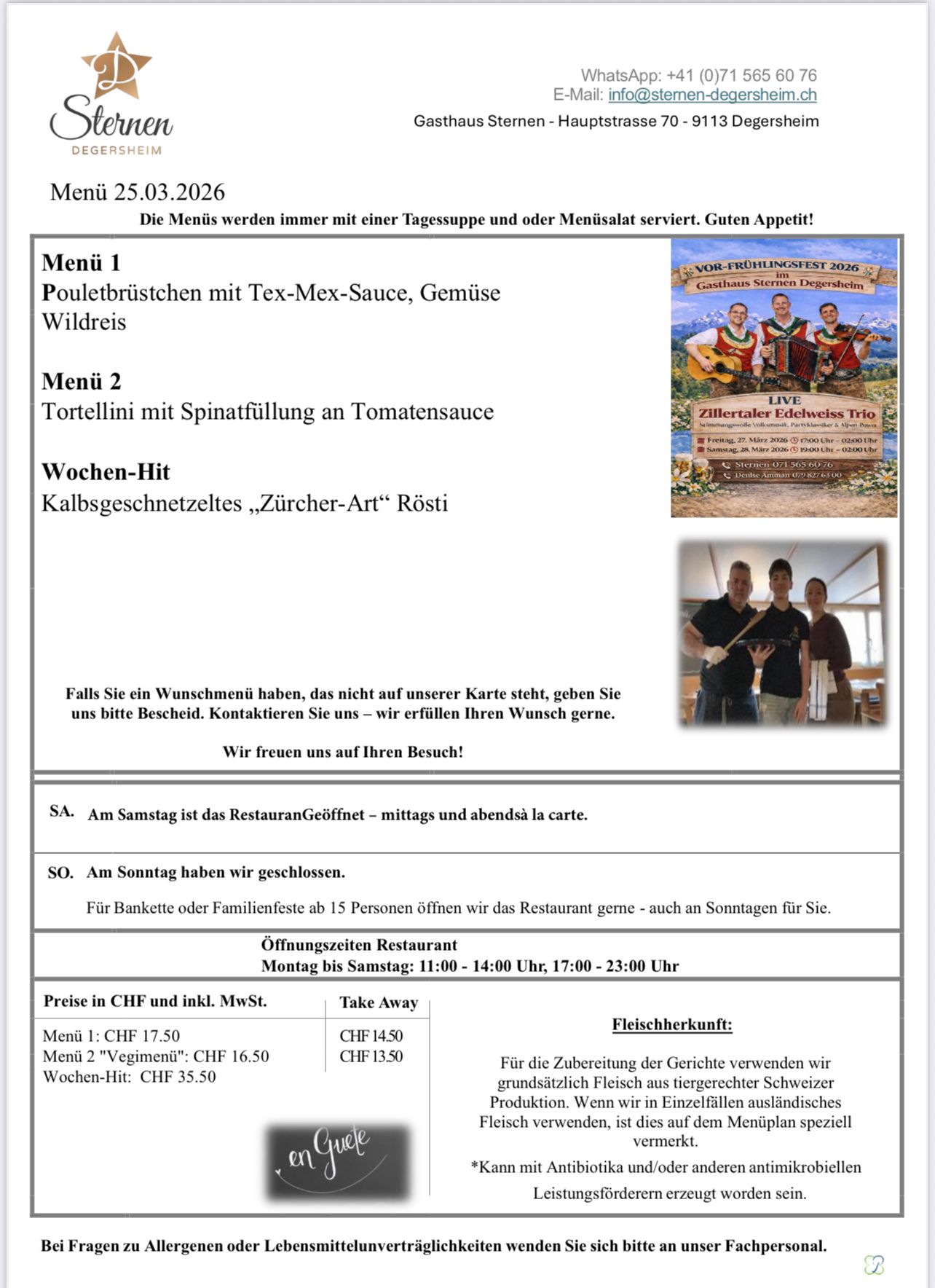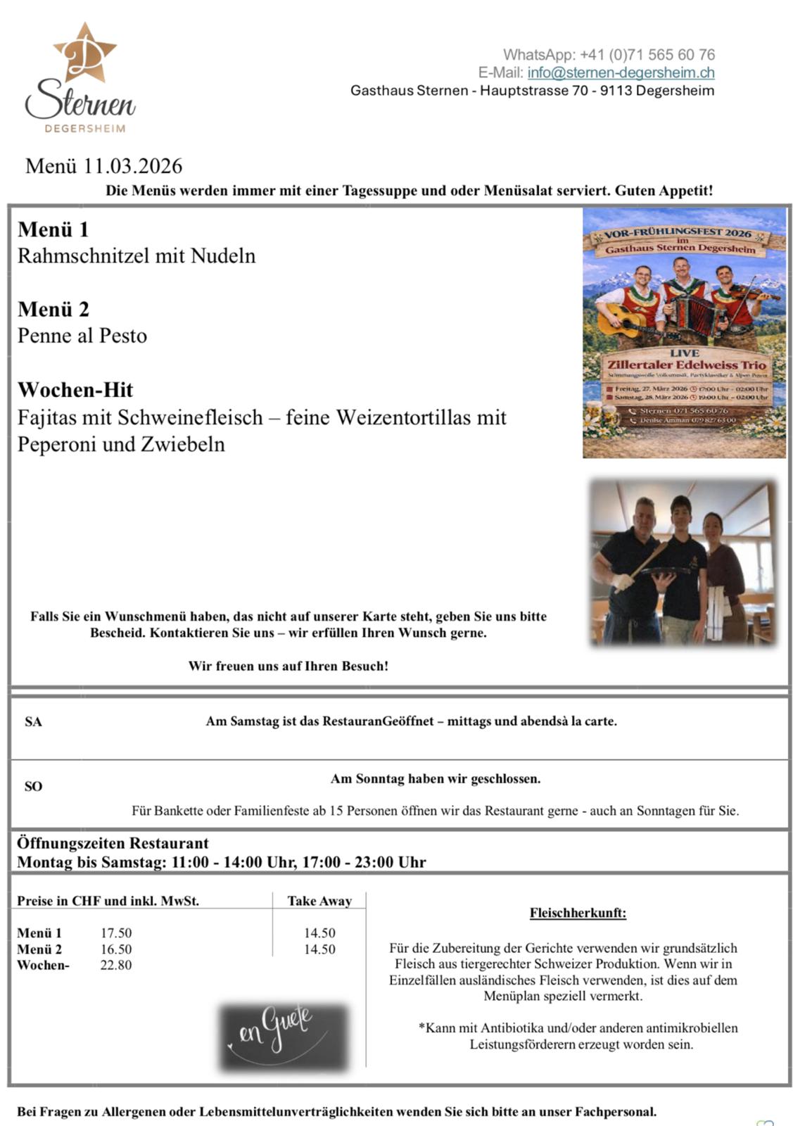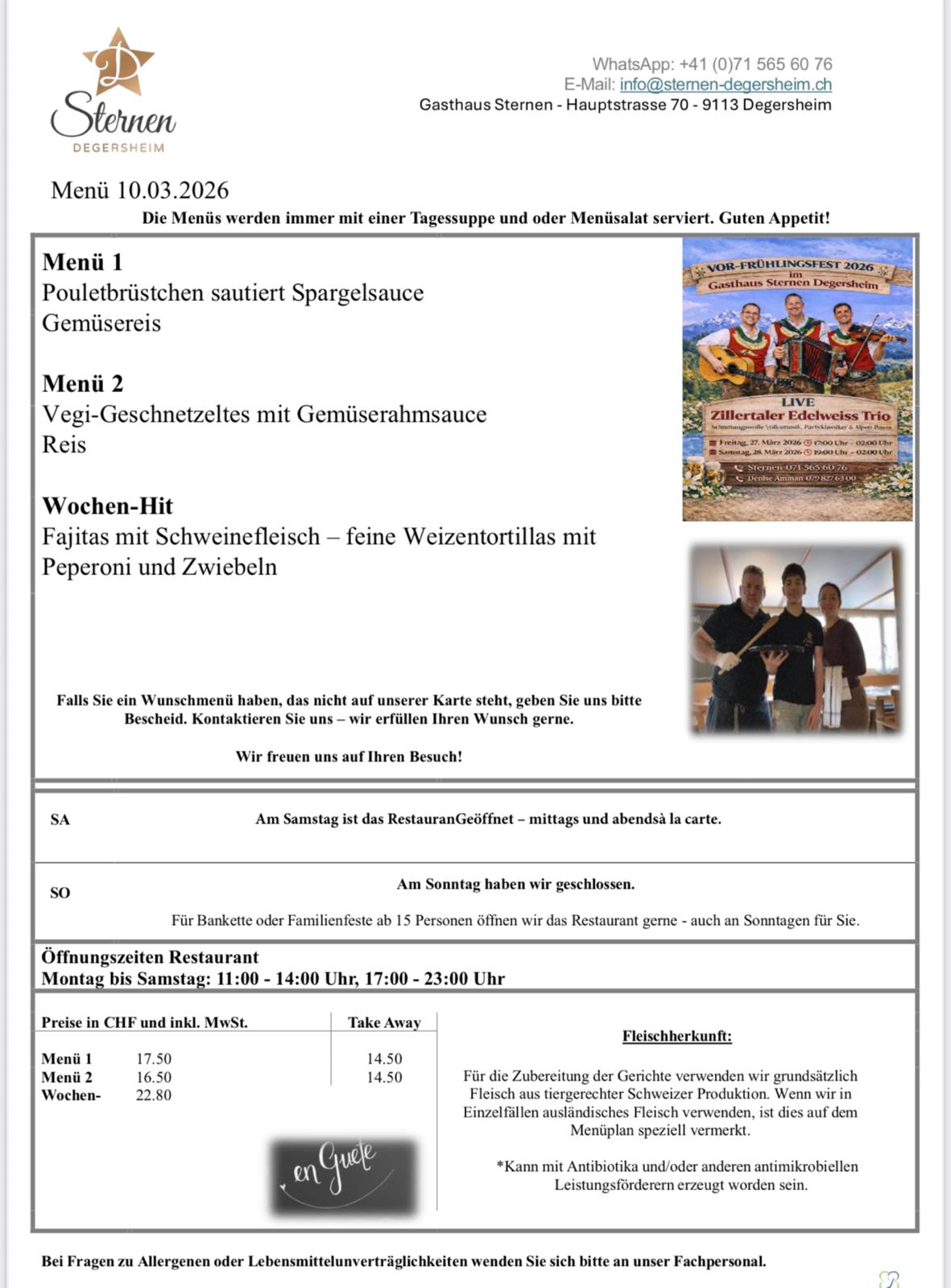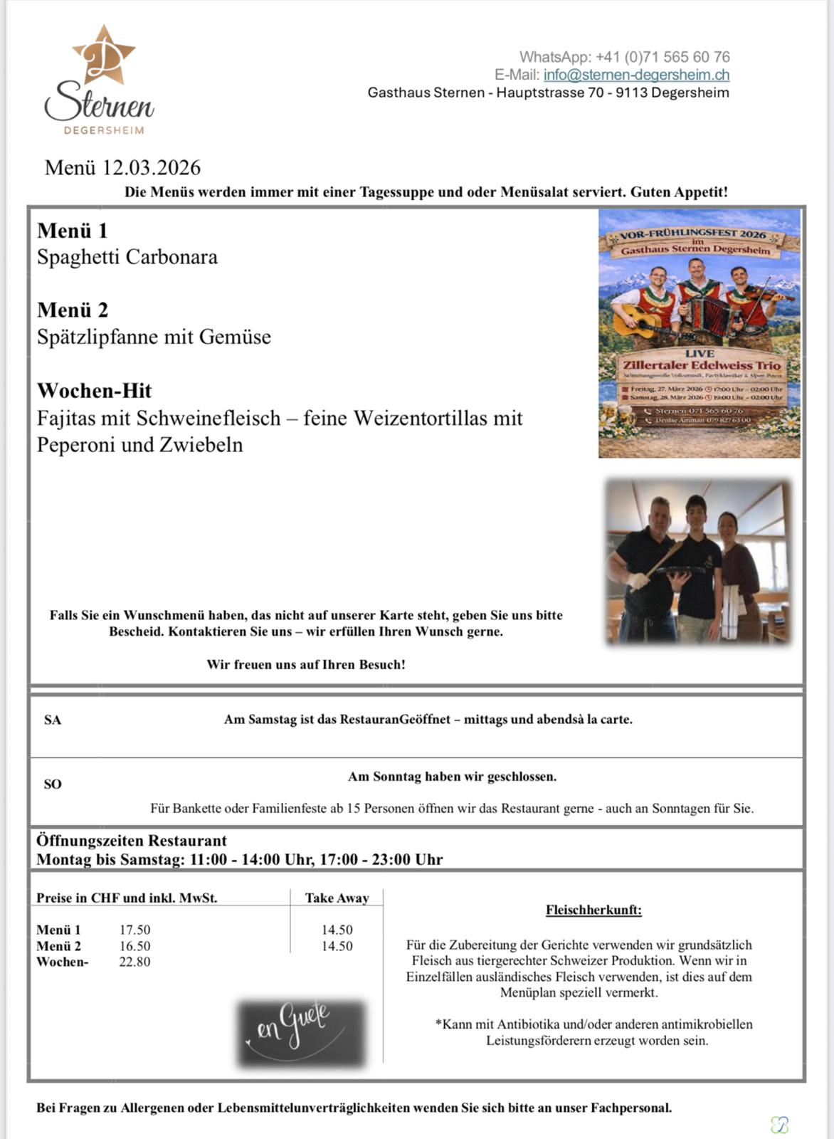VOR-FRÜHLINGSFEST 2026 im Gasthaus Sternen Degersheim