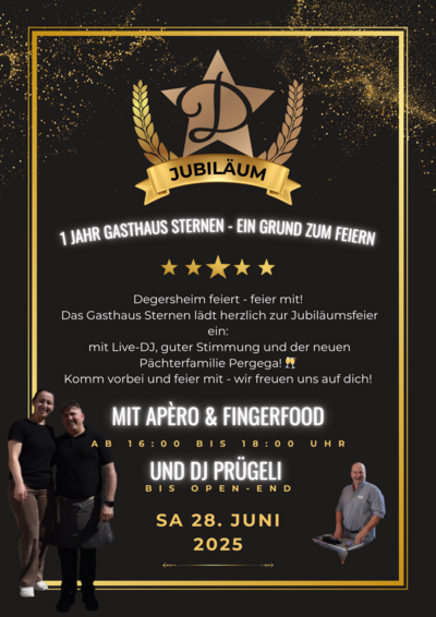 Am Samstag, 28. Juni 2025 ab 16:00 Uhr laden wir herzlich ein zur grossen Jubiläums-Party im Sternen Degersheim!