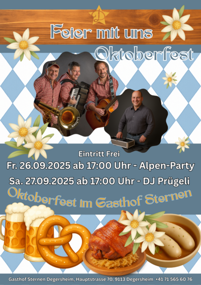 Am 26. und 27. September 2025 verwandeln wir den Gasthof Sternen in ein echtes Oktoberfest-Zelt!