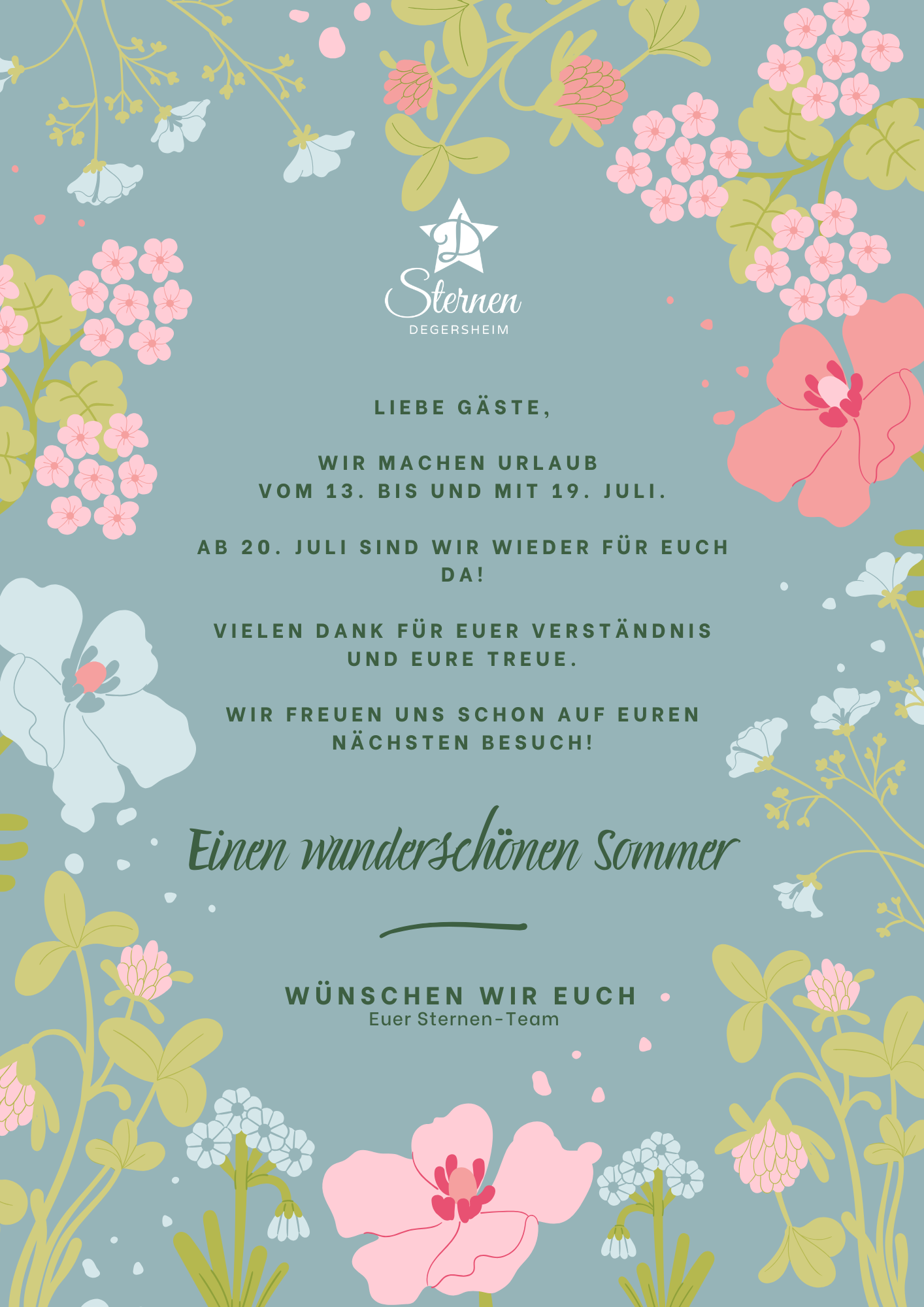 Betriebsferien vom 13. Juli bis und mit 19. Juli 2025