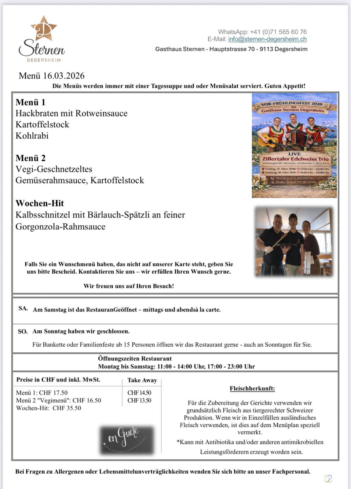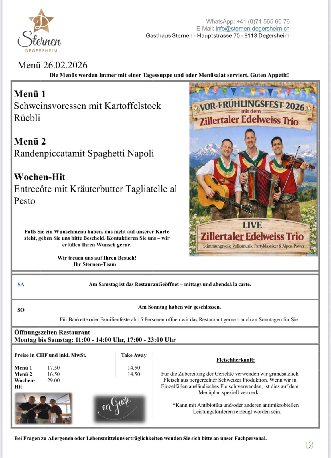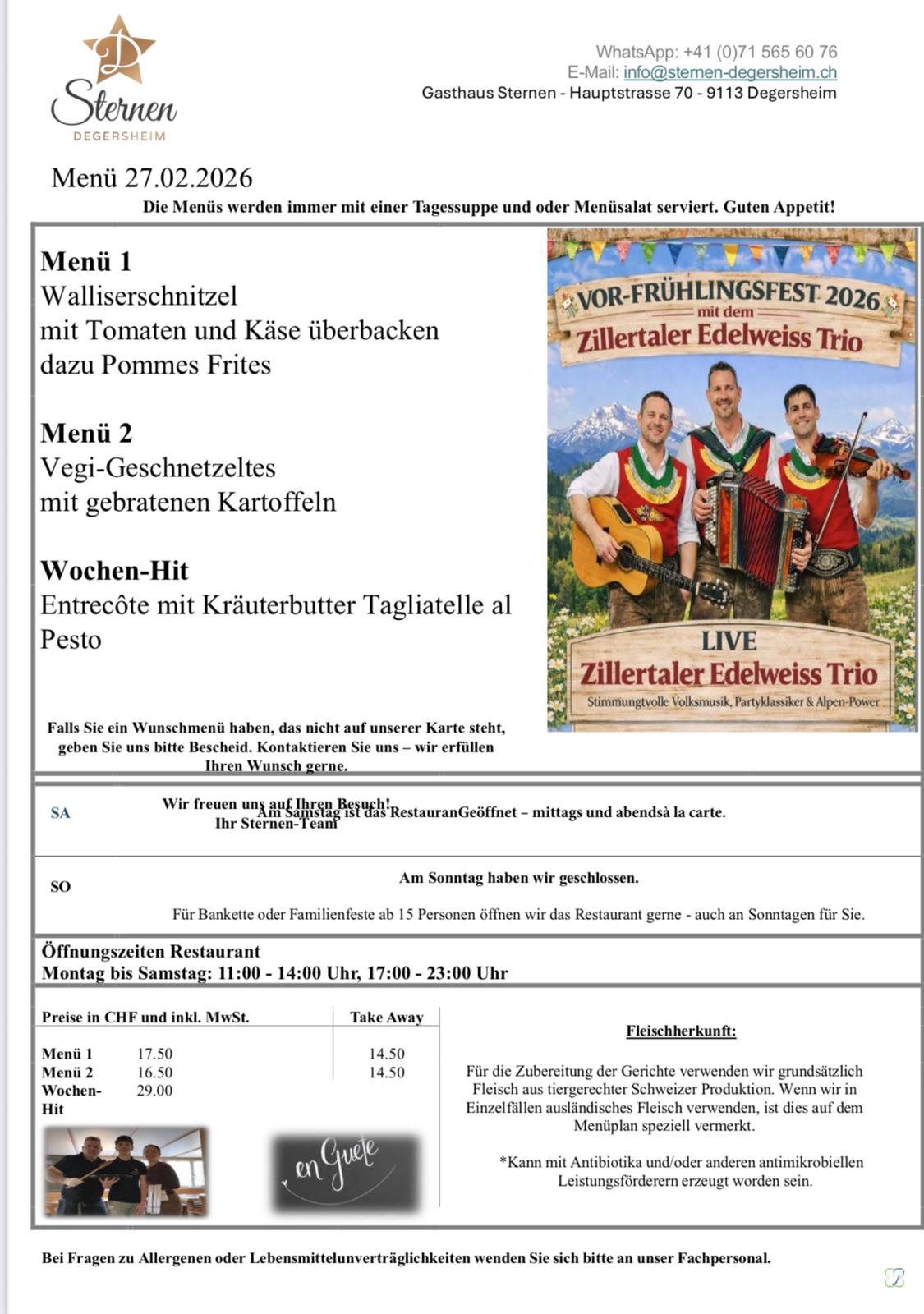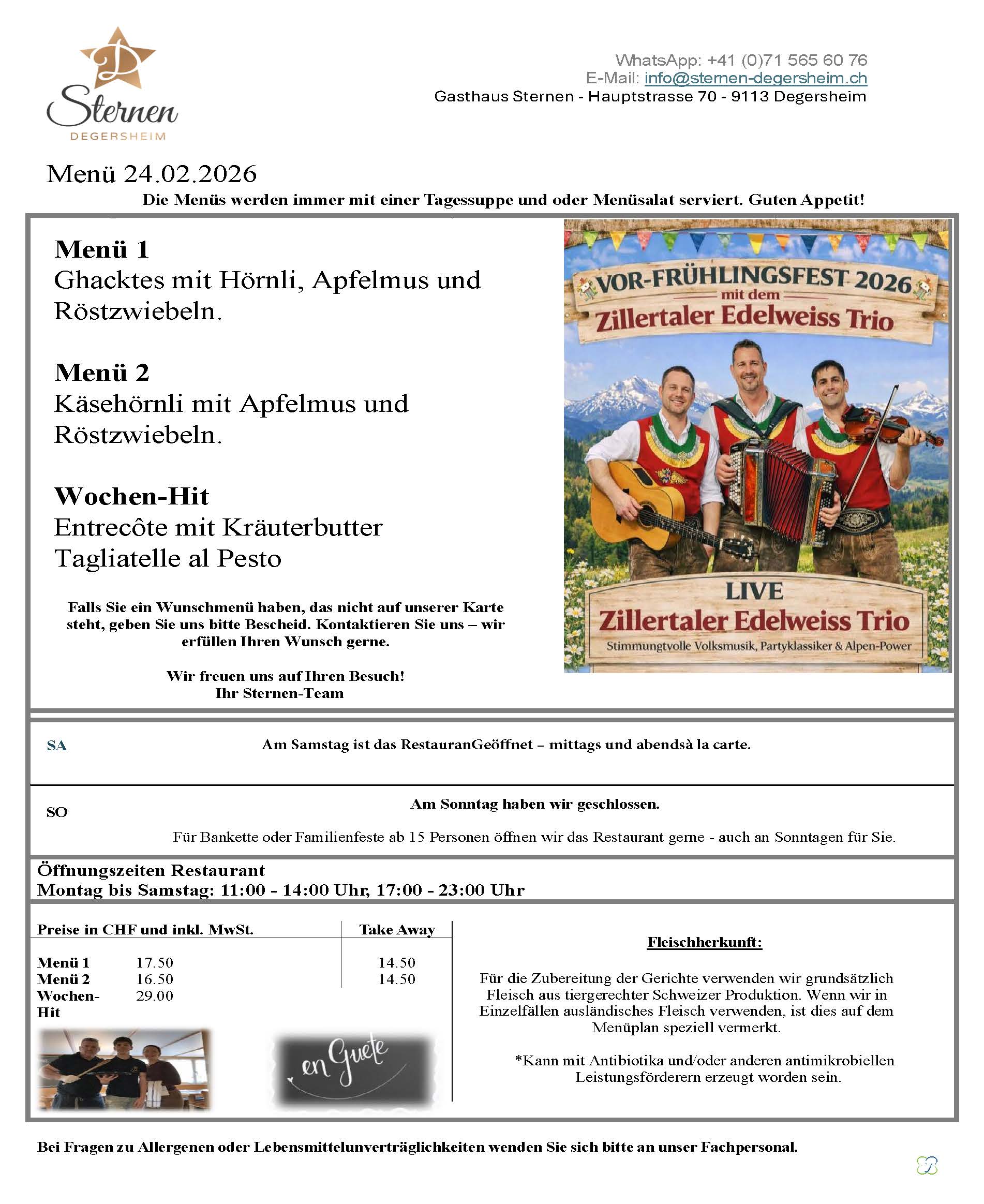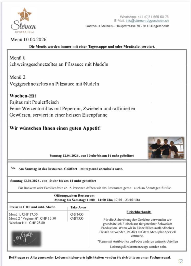 VOR-FRÜHLINGSFEST 2026 im Gasthaus Sternen Degersheim