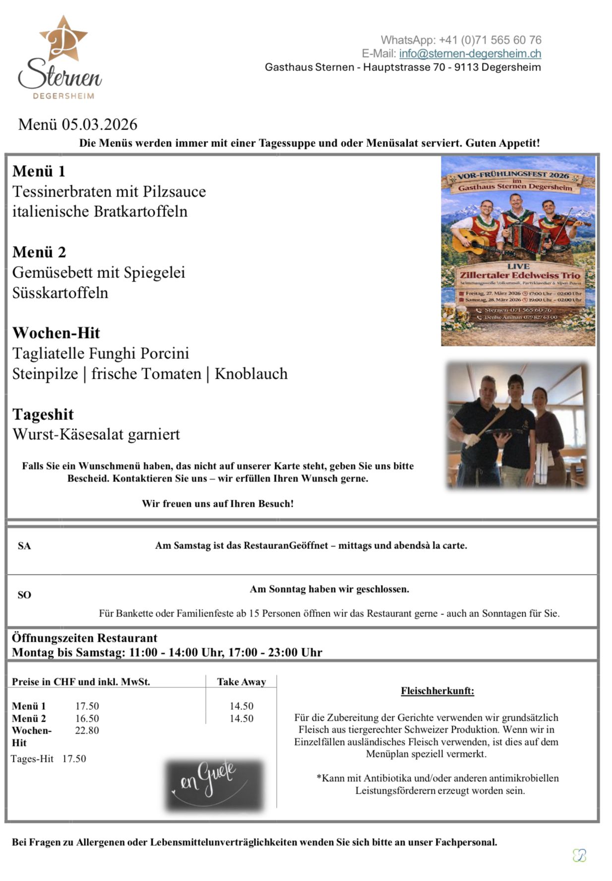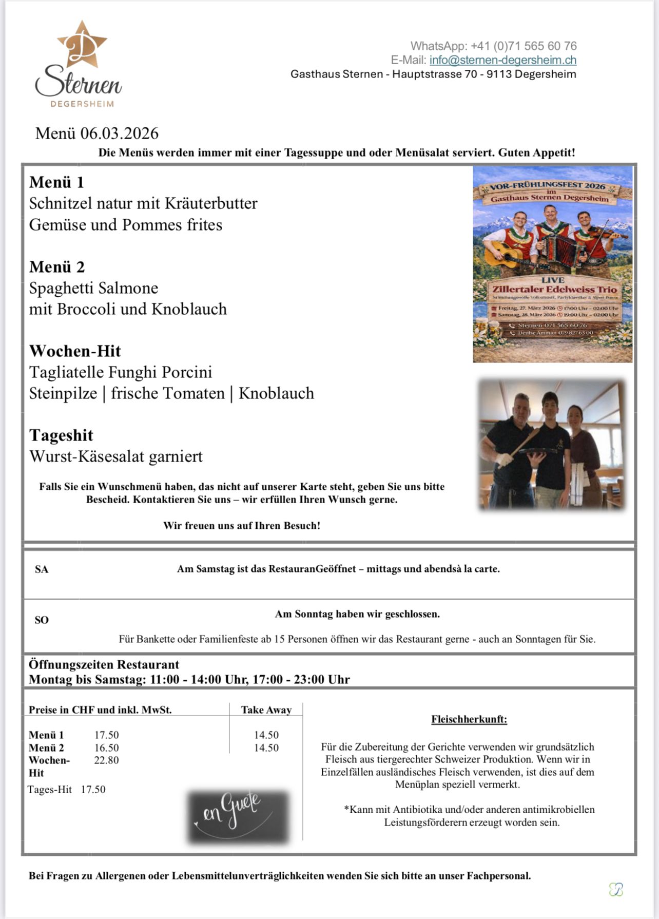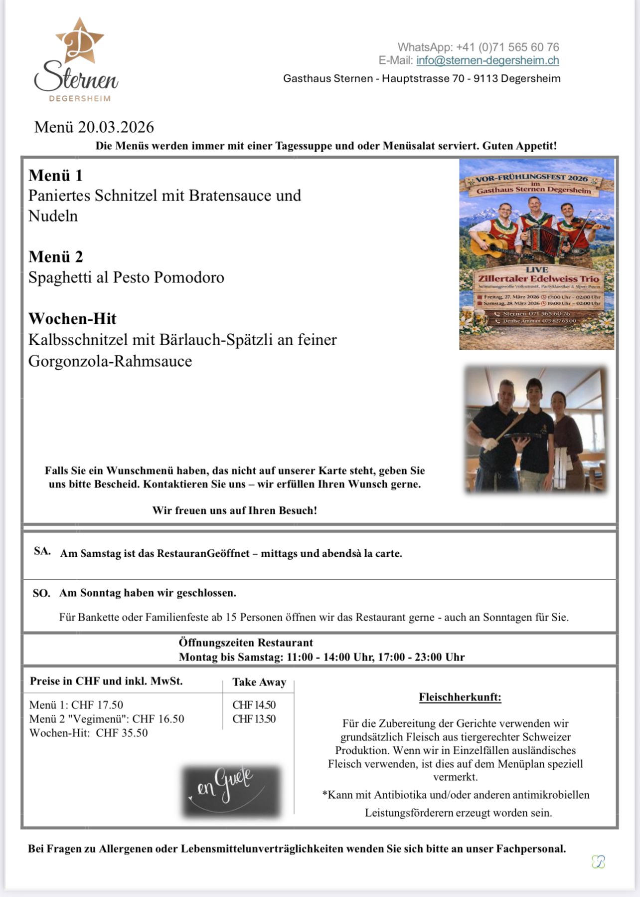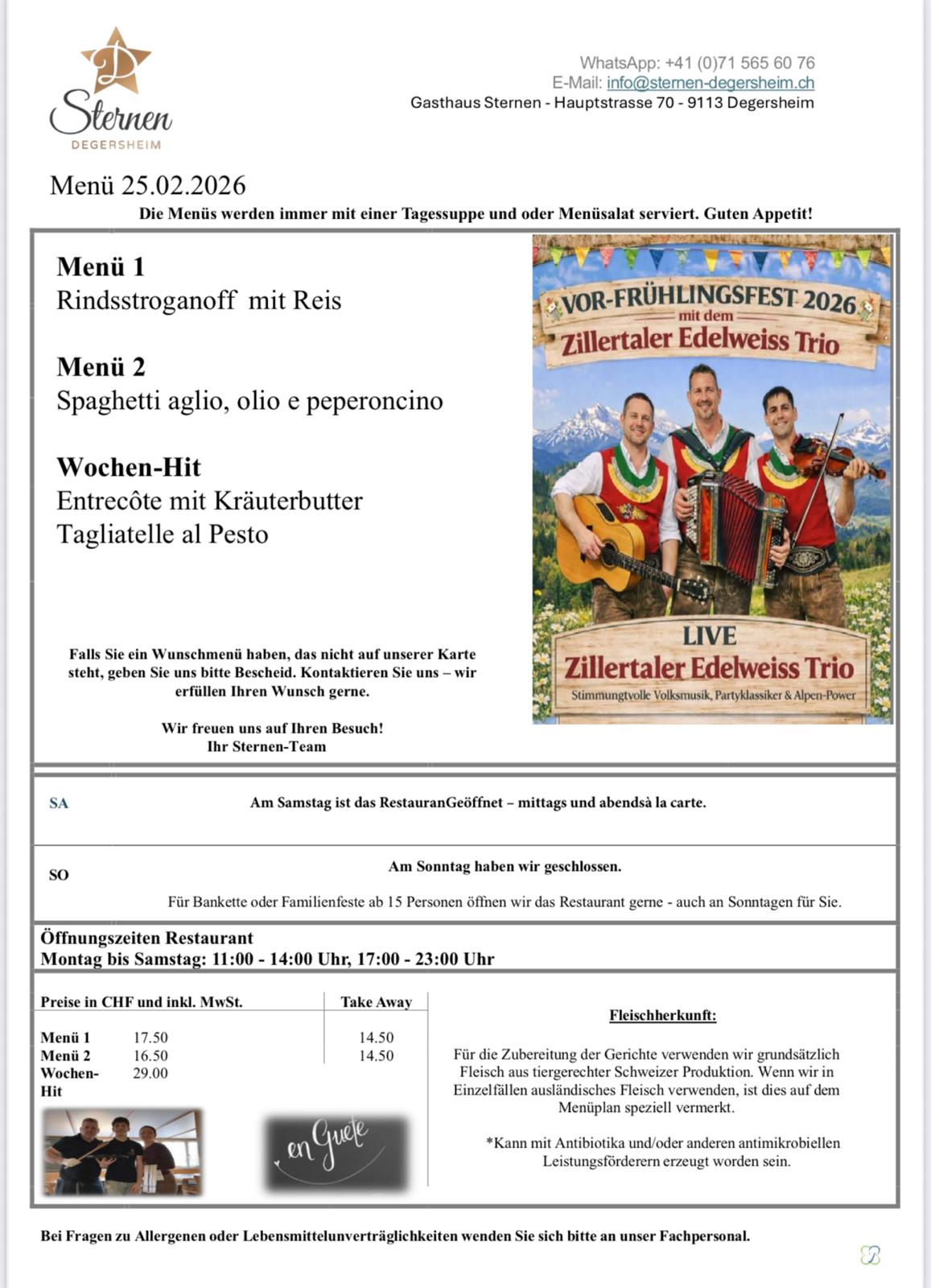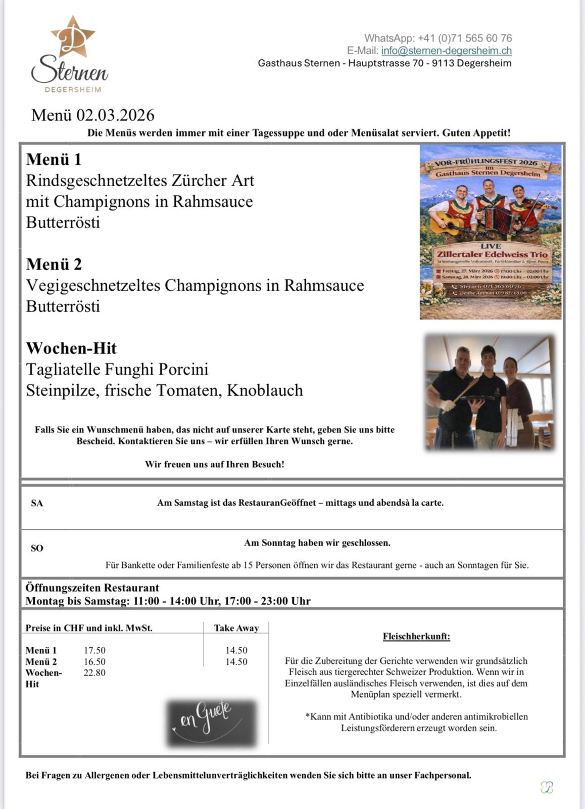 VOR-FRÜHLINGSFEST 2026 im Gasthaus Sternen Degersheim
